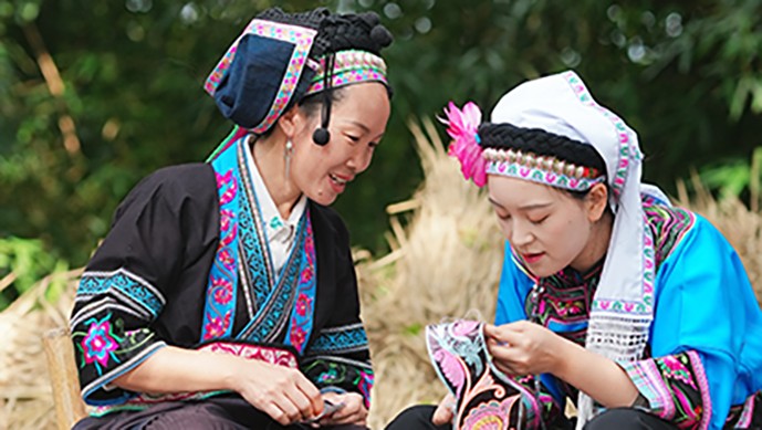 米连科技认识到,非遗传承的关键在于“人”,尤其是年轻一代的认知与喜爱。平台充分发挥其用户覆盖广、互动形式强的优势,将非遗元素创造性融入线上活动。例如,在"将爱绣出来"主题活动中,平台以布依族非遗传承人为核心,通过精心设计的系列海报,从地域文化、绣法图案、传承精神等多个维度,全面展现了布依族刺绣深厚的文化底蕴。除了线上传播,平台还拍摄了精美的宣传视频,带领用户走进云贵大山的自然美景,见证布依族姑娘们以针线传情,用绣纹表达心意,生动诠释了布依族独特的情感表达方式。