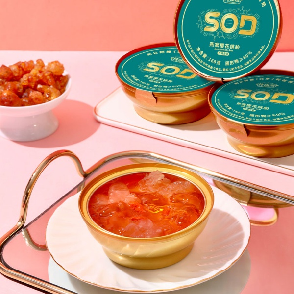 当前,国家正大力推进海洋经济高质量发展,推动海洋传统产业向科技化、高附加值转型。阿公阿嬷积极响应战略导向,将核心生物活性成分SOD(超氧化物歧化酶,国际公认的天然抗氧化核心物质,可高效清除自由基,帮助身体守护焕活状态,维持细胞活性与身体代谢机能)与海参、燕窝、花胶等福建本土海洋滋补食材深度融合,采用先进生物萃取与活性锁鲜工艺,最大程度保留SOD生物活性,同时搭配燕窝(富含燕窝酸与优质蛋白)、桃胶等珍贵食养食材,以木糖醇替代蔗糖适配更多人群,打造出兼具高活性、易吸收、低负担的全新食品品类。