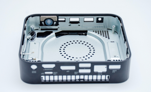 华硕NUC 14 Elite整体采用纯黑色磨砂工艺,0.56升的超紧凑机箱,在寸土寸金的办公桌面上不会过多占用空间。无论是中小型企业办公工位、零售店铺收银台/展示区,还是教育机构教室都能轻松安置。圆润的边角设计塑造视觉平衡的同时,契合现代办公的审美趋势。与整体设计相吻合,NUC 14 Elite的所有接口均为圆角设计,Power键圆形设计的同时,还做了中心下沉处理,手感MAX。
