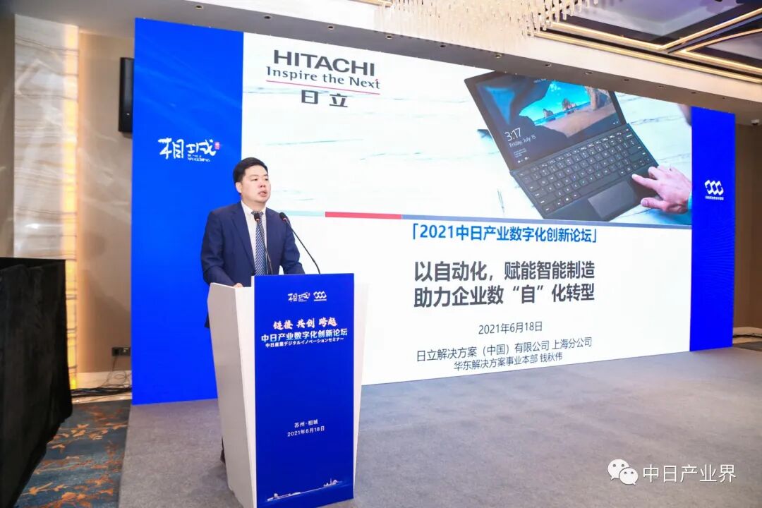 接下来,日立解决方案(中国)有限公司上海分公司华东解决方案事业部副总经理、RPA事业负责人钱秋伟先生作了以“创新应用:以自动化赋能智能制造,助力企业数“自”化转型”为主题的演讲。