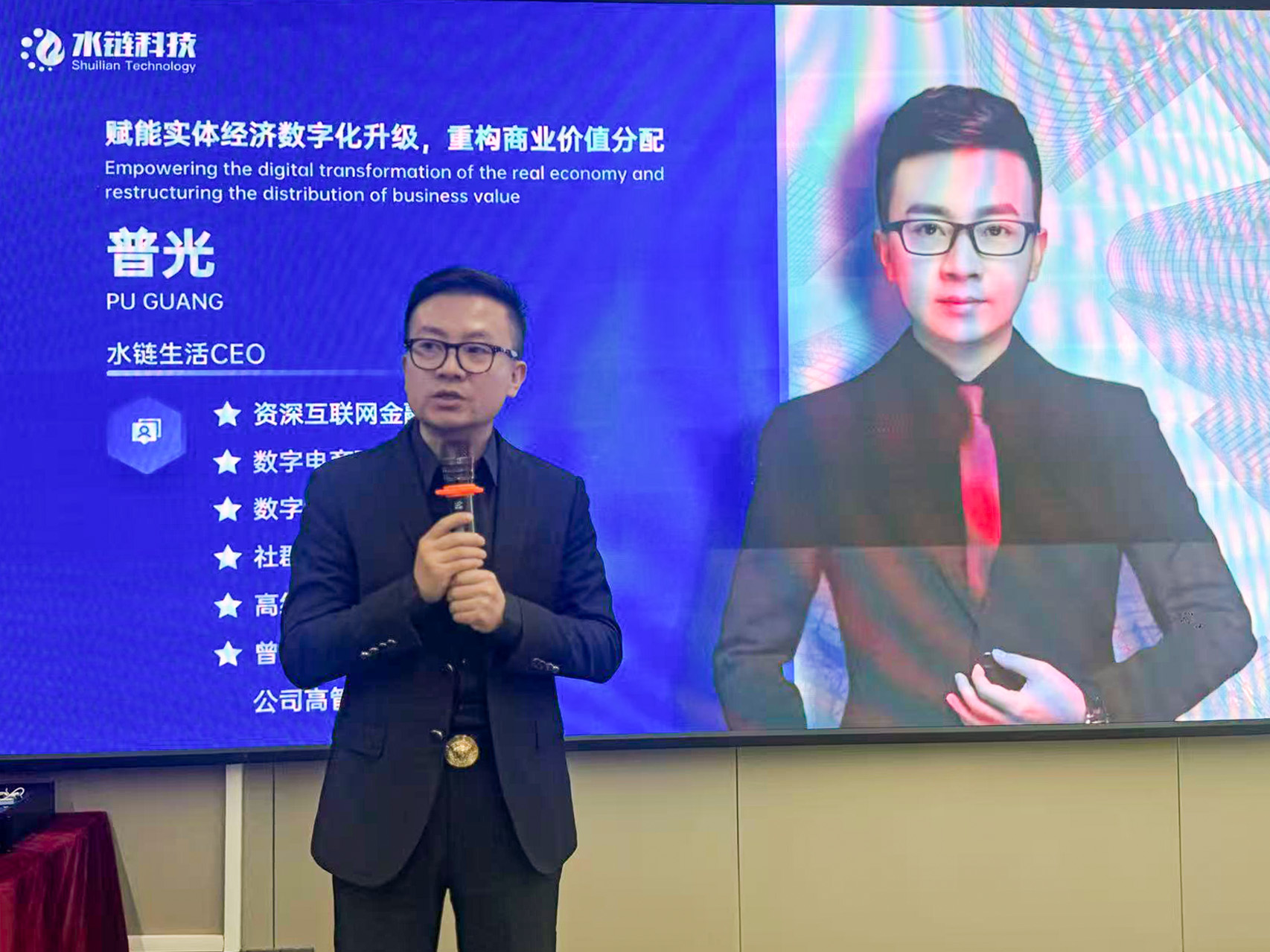 商务特使代表喻昌庭先生、水链生活水站分享嘉宾李开远先生凭借数十年实体经营阅历,分享了传统行业面临的发展困境,以及接入水链生活平台后在客源拓展、效率提升等方面的显著变化,真实案例让 “数字化转型” 不再抽象,更具说服力。